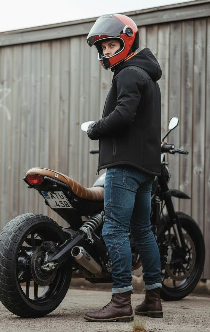 Tämä huppari yhdistää moottoripyöräilyn toiminnallisuuden tyylikkääseen, urbaaniin ilmeeseen. Täydellinen niille, jotka haluavat ajaa suojattuna – mutta näyttää rennolta ja arkiselta pyörän selästä noustessa. Minimalistinen muotoilu, jossa on puhtaat linjat ja huomaamattomat yksityiskohdat, sopii sekä kaupunkiympäristöön että seikkailuihin. Huppari, jota voi käyttää sekä kaupungissa että kahdella pyörällä.