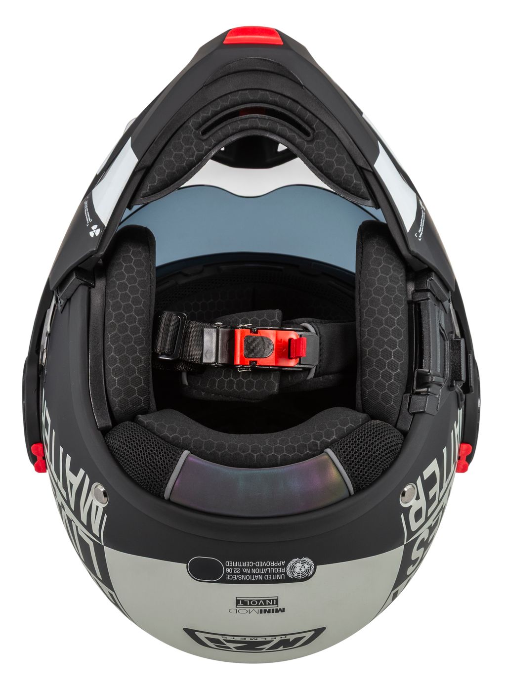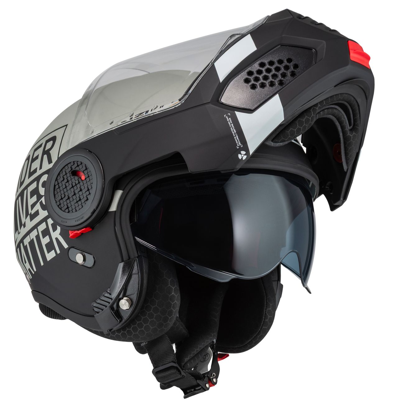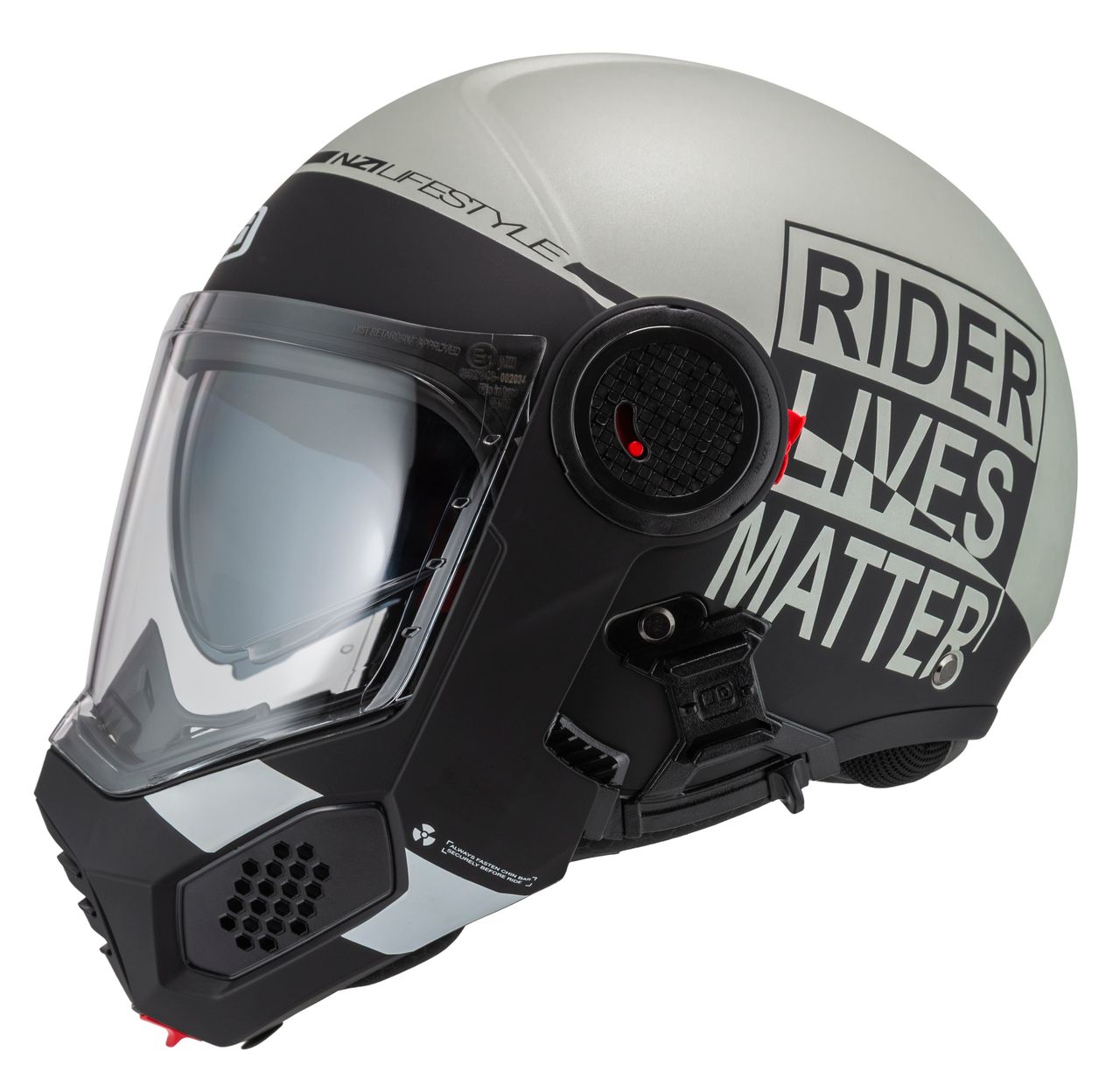 Takket være dobbelt P/J-certificering i henhold til ECE 22.06 kan du køre sikkert både med hagepartiet lukket på motorvejen eller opfældet i bytrafik.