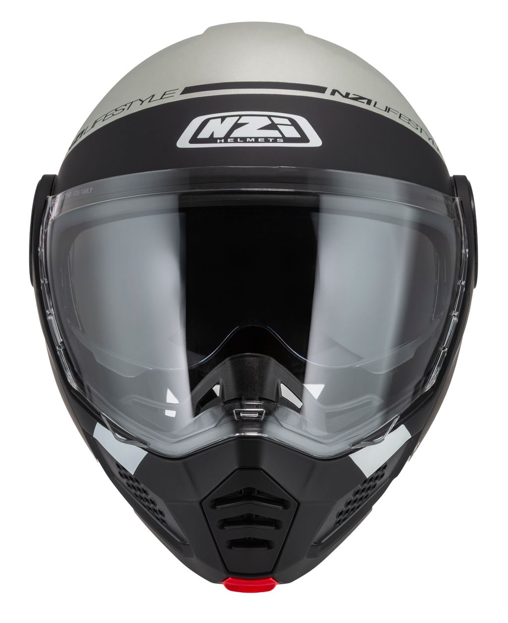 Med et enkelt tryk på en knap fældes hagepartiet op, hvilket giver bedre ventilation og fleksibilitet ved stop eller rolig bykørsel.