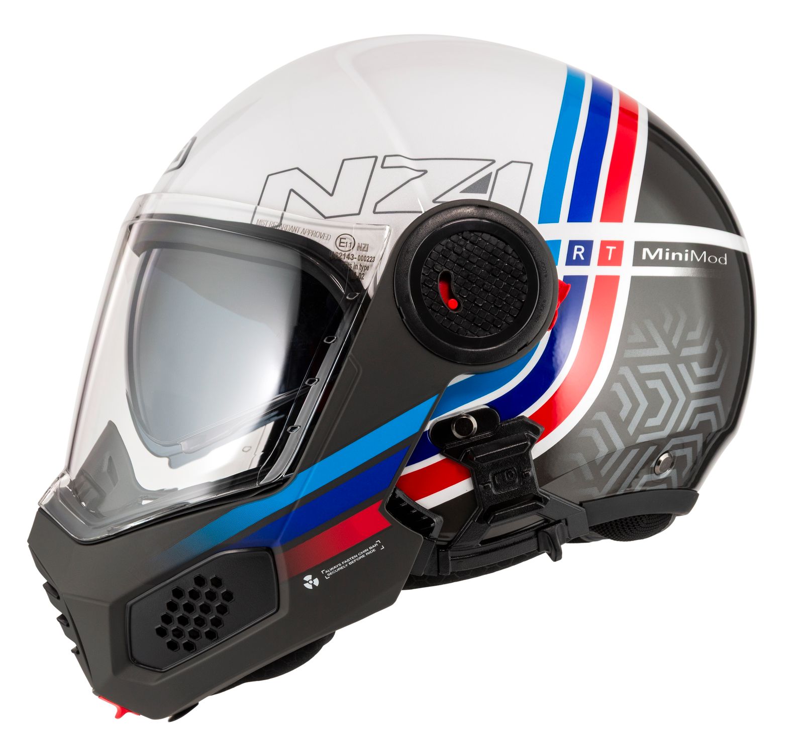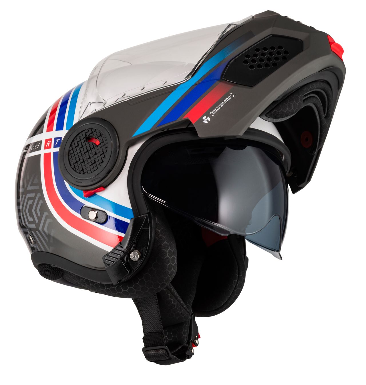 Den smarte opfældelige konstruktion gør, at du nemt kan skifte mellem integralhjelm og åben hjelm.