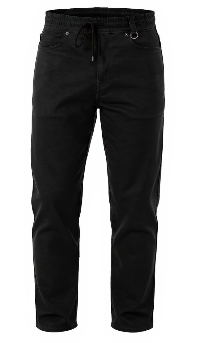 Slimfit-design, rento look (näyttää farkuilta tai sweatpantseilta)