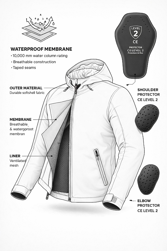 • Softshell-rakenne mukavuuden ja liikkumisen tueksi
