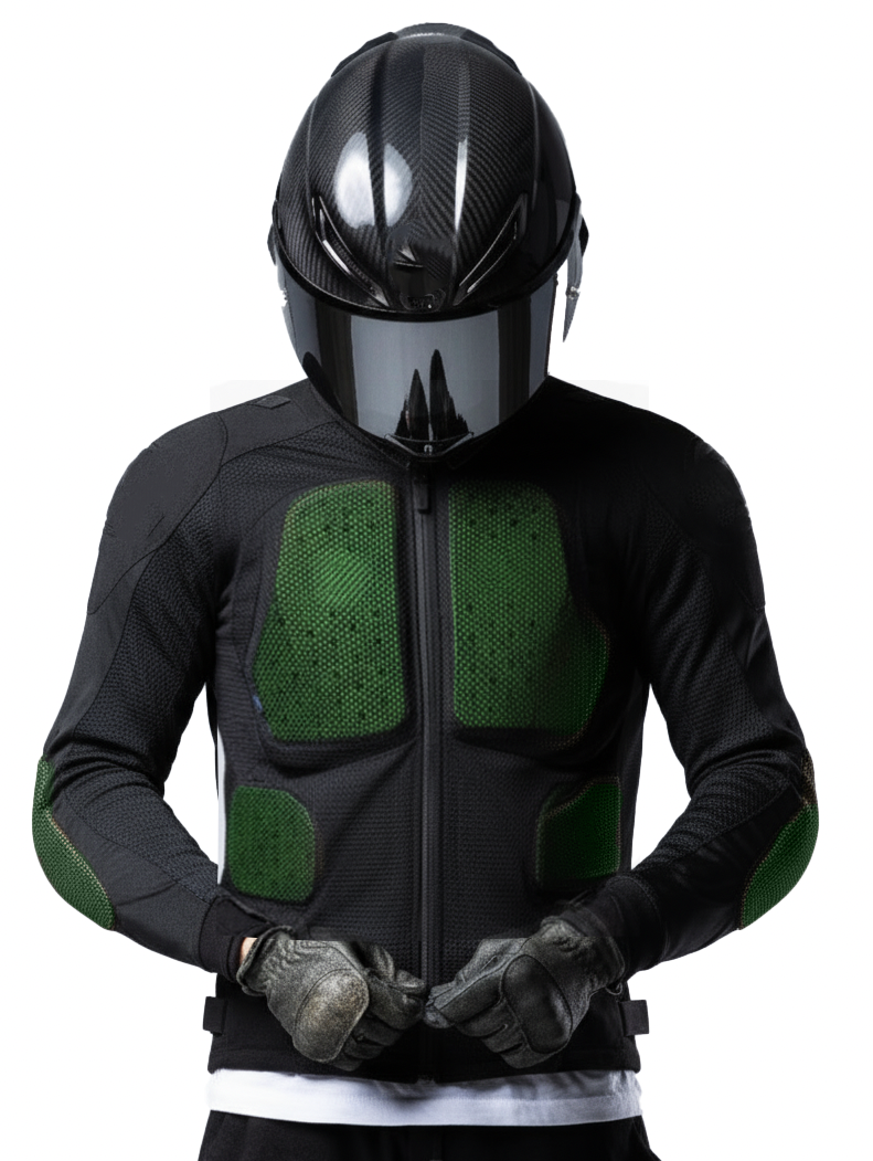 Jaettu Rintasuoja (CE EN1621-3:2018 Level 2 Max) – Täysi suoja + joustavuus. Mukautuu kehon liikkeisiin ilman kömpelyyttä.