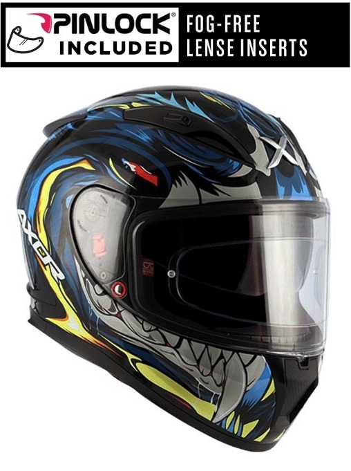 Monipositiivinen kirkas ja naarmuuntumaton visiiri - Visiiri voidaan säätää eri asentoihin ajon aikana ja siinä on naarmuuntumaton visiiri naarmujen vähentämiseksi ja jousikuormitteinen varmistaakseen tiiviimmän istuvuuden tiivisteitä vasten