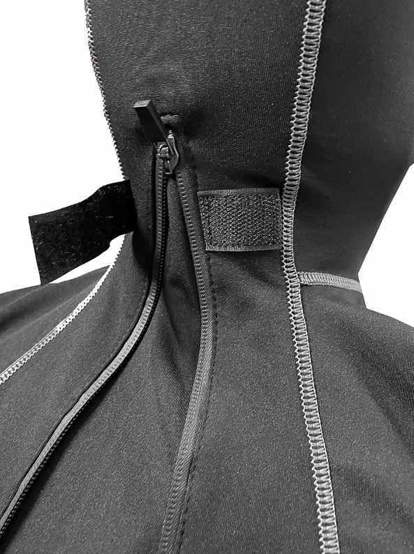 Lycra-paneeli, joka voidaan avata myös vetoketjulla isomman lautasen takaamiseksi.